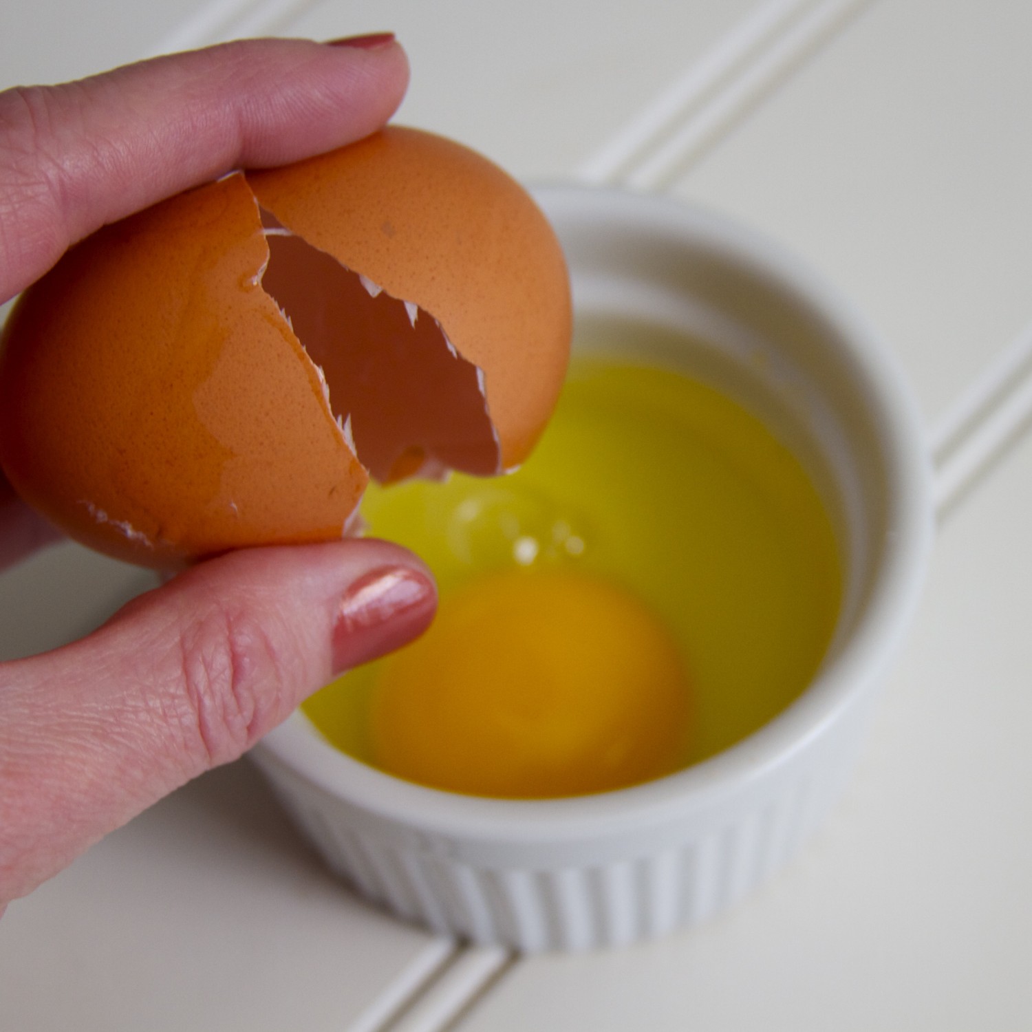 - Break eggs, one at a time, into individual small cups or ramekins.