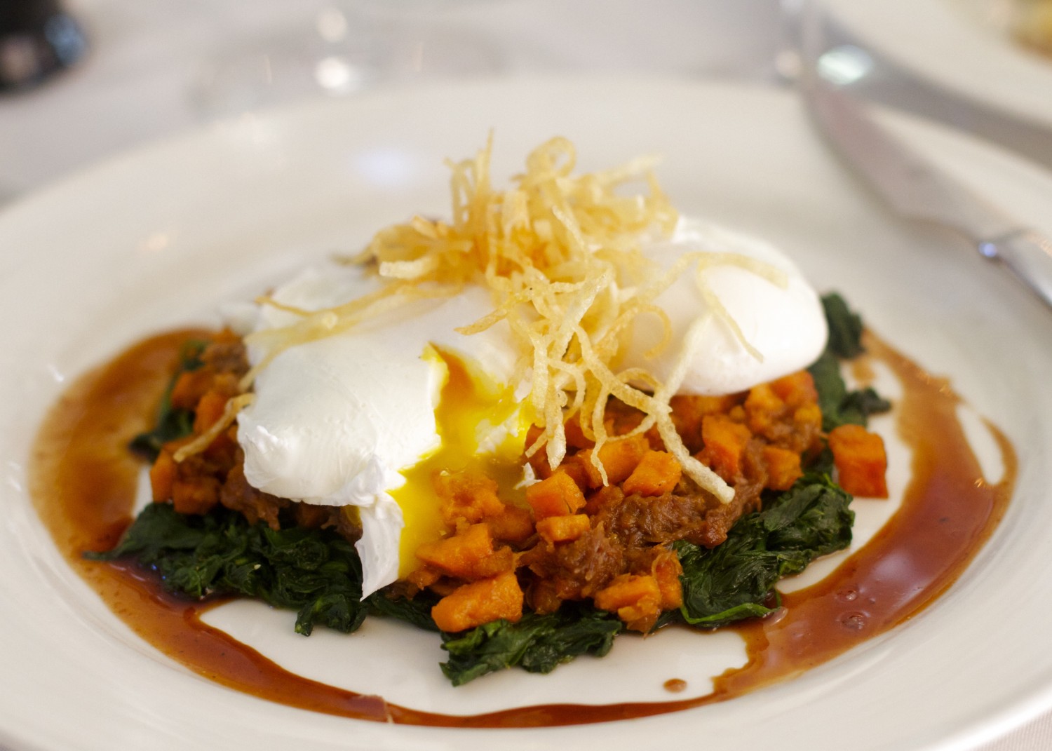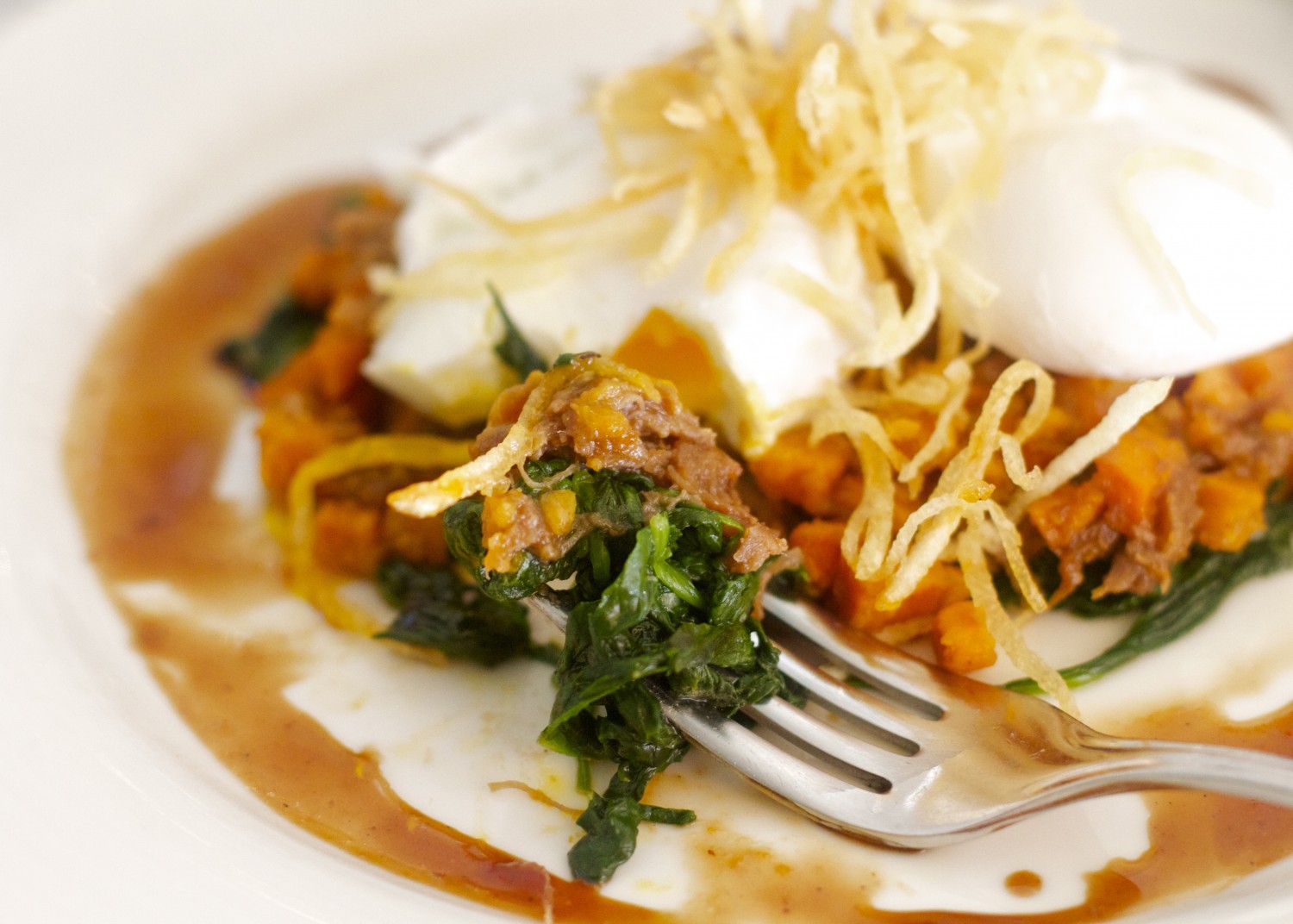 It was delicious. The eggs were perfectly cooked. The creamy, fatty, duck confit combined with the sweet potatoes and spinach made for the perfect brunch dish.