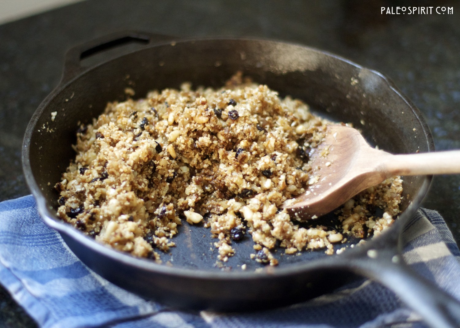 - Place the shallots, pine nuts and dried currents in the hot skillet where you cooked the venison. (Or, if making it independent of the meat dish, heat 2 tablespoons of oil in a pan.) Cook for about 2 minutes stirring constantly and deglazing the pan.