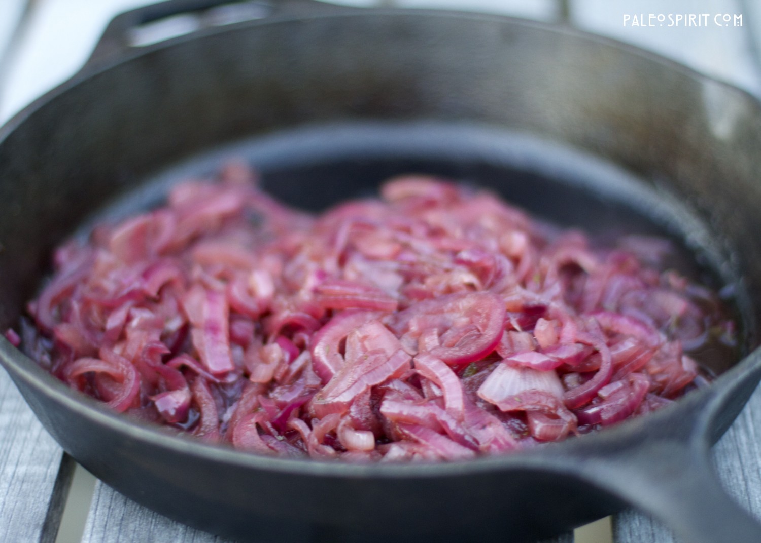 I got plenty of advice from folks who have experience with venison. I was tempted to marinate the steaks or use a brine. But I ultimately decided to go the simple route and just pan sear the venison steaks. The exotic flavors come primarily from the cauliflower couscous side dish and the accompaniment of the sweet and tangy red onion compote. These recipes are the result of my plan to treat the inherently paleo venison (hunter food!) with the respect it deserves. I wanted to add some sophistication to this meat and create something special with complimentary flavors.